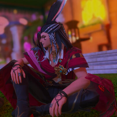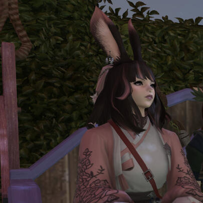 Eccentric and flirty bunny boy, also from Sharlayan. Bard and Summoner, has his Carbuncle out a lot. A rascal, but Kara's rascal.